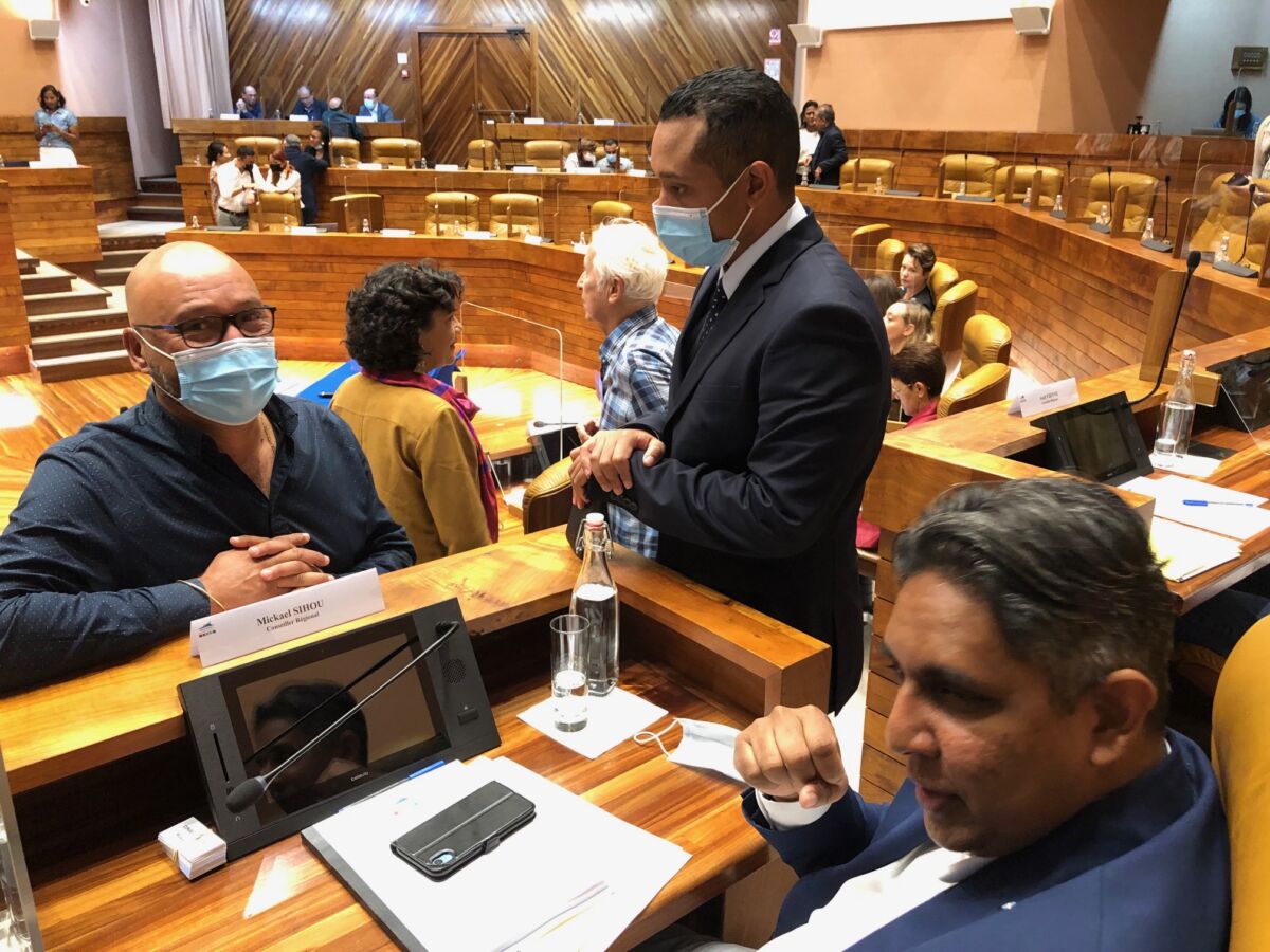 De gauche à droite : Pascal Plante, Patrice Boulevard (ses collègues de la majorité régionale) et Mickaël Sihou. (Crédit Photo : YM)