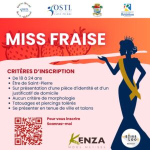Condition : Être de Saint-Pierre … qui en dehors de Monvert-Les-Hauts ne produit pas de fraises. C’est étrange, non ? Comme si la fraise des miss du Tampon, de Petite-île, de l’Entre-deux ou de Saint-Joseph n’était pas digne d’un concours.
