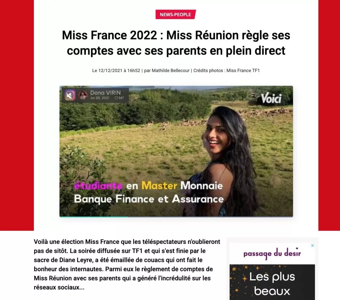 Miss Réunion elle tirer à balles réelles sur ses parents #MissFrance2022 pic.twitter.com/7hU80NcTeR