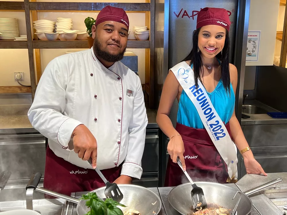 Une recette à venir déguster dans les restaurants Vapiano de Saint-Denis, Saint-Paul et Saint-Pierre. Cette matinée en cuisine s’est conclue par une dégustation en présence d’Aziz Patel, le directeur du Comité Miss Réunion, Mathieu Pelé, directeur du restaurant Vapiano de St-Paul, et les influenceurs Tik Tok Ced and So.