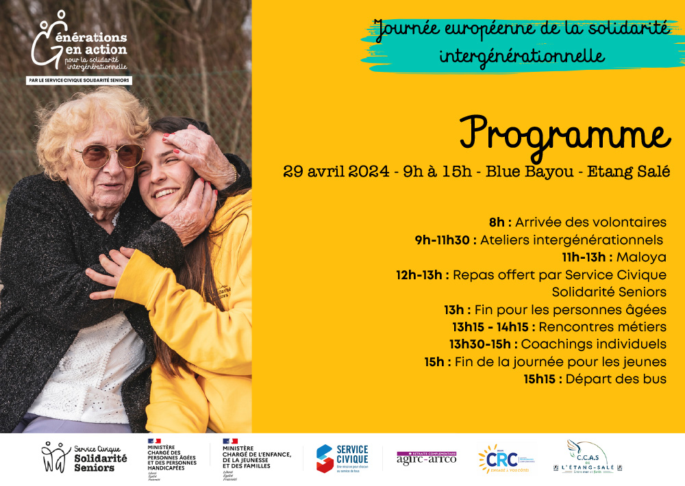 A la Réunion, le Service Civique Solidarité Seniors se mobilise le 29 avril 2024 pour lutter contre l’isolement des gramounes à l’occasion d’un événement : Rendez vous le 29 avril de 9h à 12h au Blue Bayou – Etang Salé.