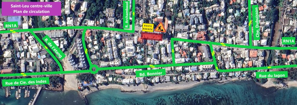 La RN1A au niveau du chantier la route sera fermée à la circulation jour et nuit entre la rue St Michel et la rue Pierre Hibon. Il s’agit de travaux de branchement essentiels pour la modernisation du réseau d’assainissement collectif.
