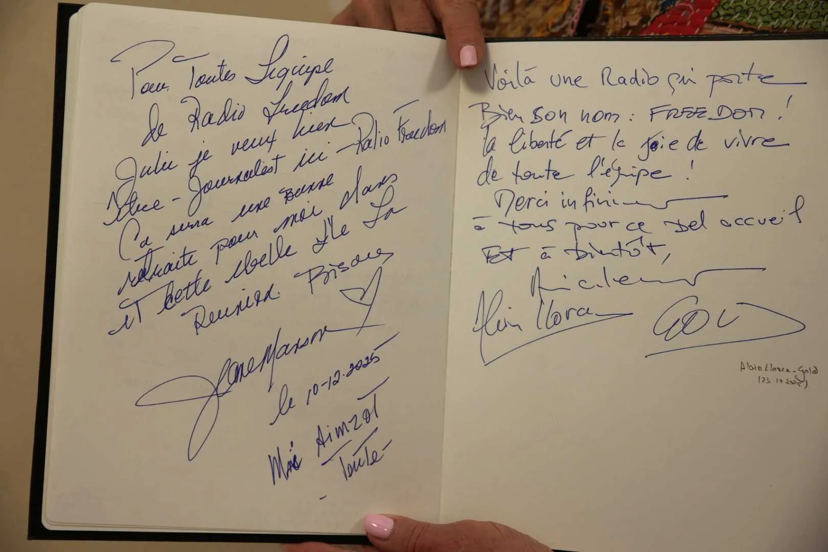 L’artiste n’a pas manqué de signer le livre d’or de Radio Free Dom