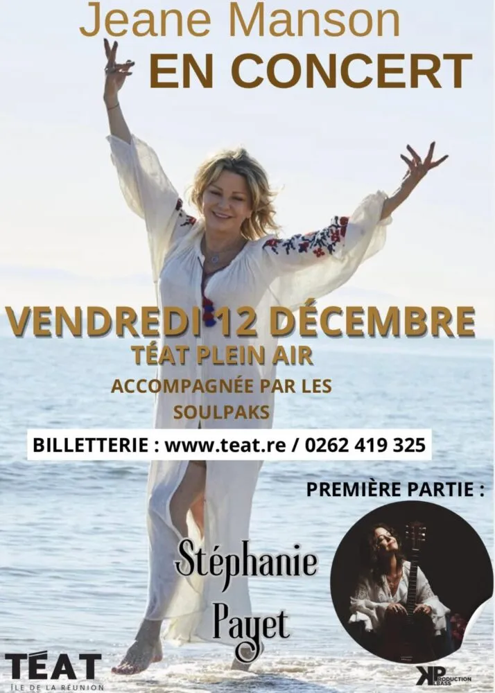 Ce retour intervient à quelques jours d’un événement culturel majeur : un spectacle inédit programmé ce vendredi 12 décembre au Téat Plein Air de Saint-Gilles. Pensé comme un voyage musical entre souvenirs et grandes mélodies, le concert réunira Jeane Manson et le groupe Les Soulpaks, pour une soirée qui mêlera élégance, énergie et émotions. Les arrangements revisités, portés par la couleur soul des musiciens, offriront une nouvelle lecture de son répertoire.