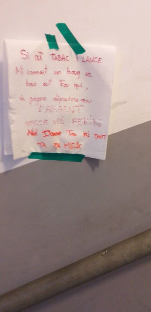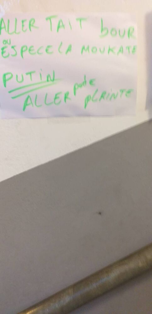 L’auditrice, se dit fragile psychologiquement et a peur de sortir seule : « Les voisins sont de plus en plus agressif verbalement et les courriers à la SIDR restent sans réponse, malgré les preuves, les photos… J’ai reçu hier devant ma porte, des mots agressifs du voisin collés devant mon logement (cf photos). J’ai porté plainte à la gendarmerie et la mairie est également informée. Je ne sais plus vers qui me tourner pour avoir de l’aide dans ce conflit qui ne fait que s’aggraver« .