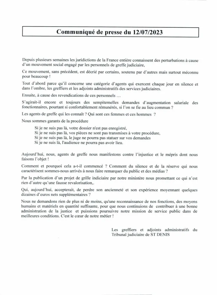 Comme les agents de greffe de l’ensemble du territoire français, ceux du tribunal judiciaire de Saint-Denis, ont fait savoir dans un communiqué qu’ils manifestent contre « l’injustice » et « le mépris » dont ils font l’objet.