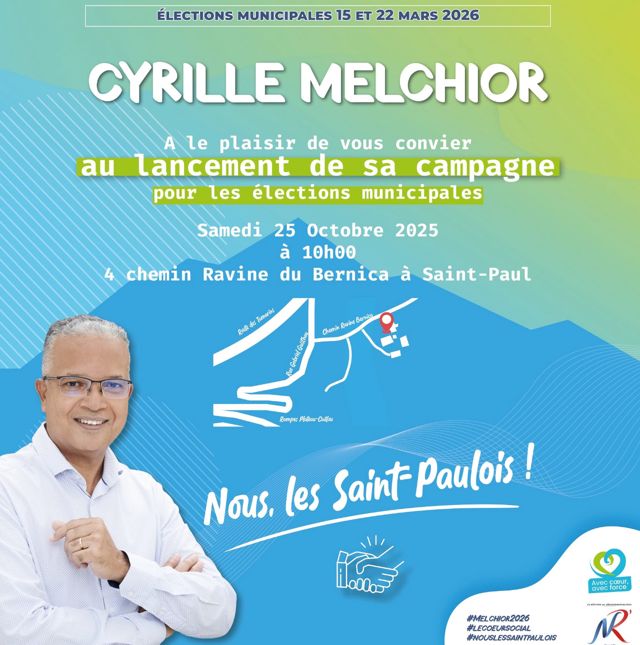 A Saint-Paul, Jean-Jacques Charolais, s’est déclaré via un communiqué de presse ce mercredi 22 octobre ; Alix Jean Mera, ce jeudi 22 octobre, lui aussi, à travers un communiqué de presse. Cyrille Melchior annoncera sa candidature ce samedi à chemin Ravine du Bernica, à 10 heures.