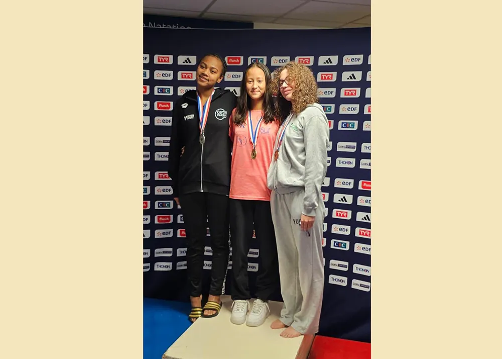 La Réunion peut être fière ! Dès la première journée des Championnats de France benjamins à Dunkerque, Anna Tsia-King-Fung (NSDR) a enchaîné les performances de haut vol, en remportant trois titres : 50 m papillon, 50 m brasse et 200 m 4 nages. À 13 ans, elle montre déjà qu’elle a le talent et la détermination pour briller sur la scène nationale.