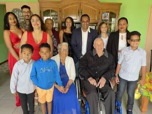 Journalier agricole à l’usine de Stella, Joseph Deveaux a planté la canne dans le secteur de Bois de nèfles et fait la fierté de toute sa famille et de ses amis réunis ce samedi matin aux côtés du Maire de Saint-Leu, Bruno Domen et de Marie Alexandre, conseillère municipale déléguée au séniors, venus féliciter à leur domicile de Piton ce couple uni pour la vie depuis 65 ans.