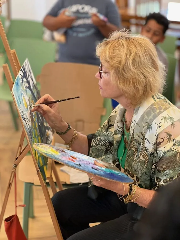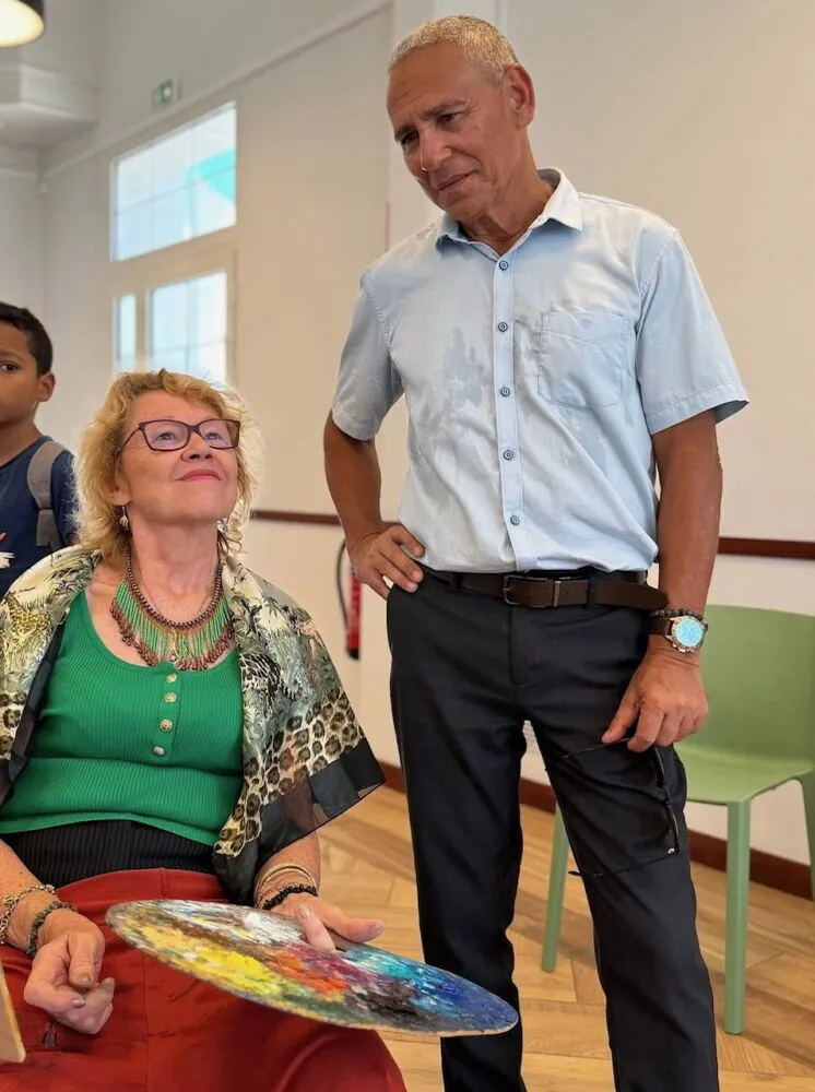 Le Maire, Joé Bédier, accompagné de l’élue à la culture, Stéphanie Poiny Toplan, a tenu à rendre visite aux artistes et en a profité pour admirer les enfants qui se donnaient à cœur joie dans les divers ateliers