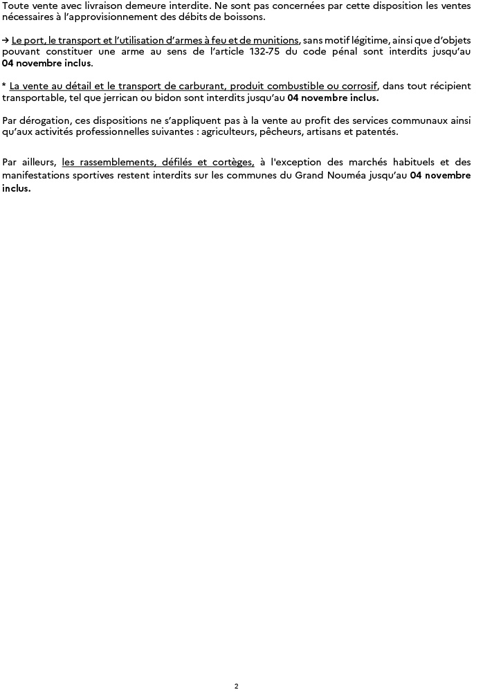 Les autorités ont également mis en place des mesures spécifiques concernant la vente d’alcool et de carburant. Ainsi, la vente d’alcool est interdite jusqu’au 3 novembre, sauf dans les bars et restaurants, tandis que les cavistes peuvent vendre des quantités limitées d’alcool durant la semaine. La vente au détail de carburant et de produits dangereux dans des récipients transportables est totalement prohibée.