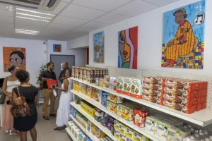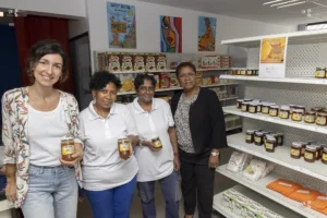La Boutik. C’est le nom d’une épicerie sociale et solidaire inaugurée le 8 décembre, au 81 rue Félix Guyon, en centre-ville de Saint-Denis. Ce projet de boutique solidaire, porté par l’AAPEJ (Aide et Protection de l’Enfance et de la Jeunesse) et l’association Frédéric Levavasseur, est financé par le Département au titre de l’aide alimentaire dans le cadre de la stratégie de prévention et de lutte contre la pauvreté. 35 000€ sont consacrés par la Collectivité au fonctionnement de la Boutik et 20 000€ à l’investissement. Particularité de La Boutik : en plus des produits de premières nécessités, les conserves et les produits surgelés et d’hygiène proposés à bas prix dans ses rayons et à bord de son « épicerie mobile », le public bénéficiaire du dispositif peut aussi acheter des produits frais, des fruits, des légumes, des brèdes et des laitues provenant des potagers de l’association Frédéric Levavasseur. Sans oublier le miel, issu des ruchers de l’AAPEJ, qui fait la fierté des membres de l’association.