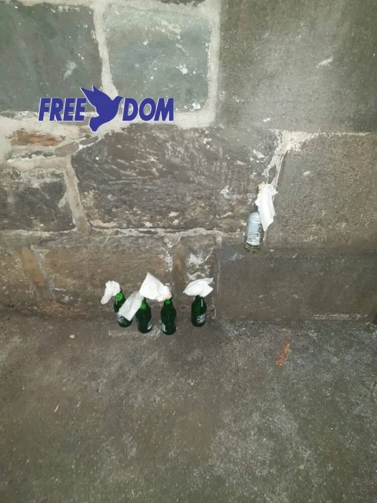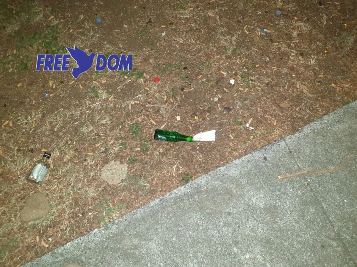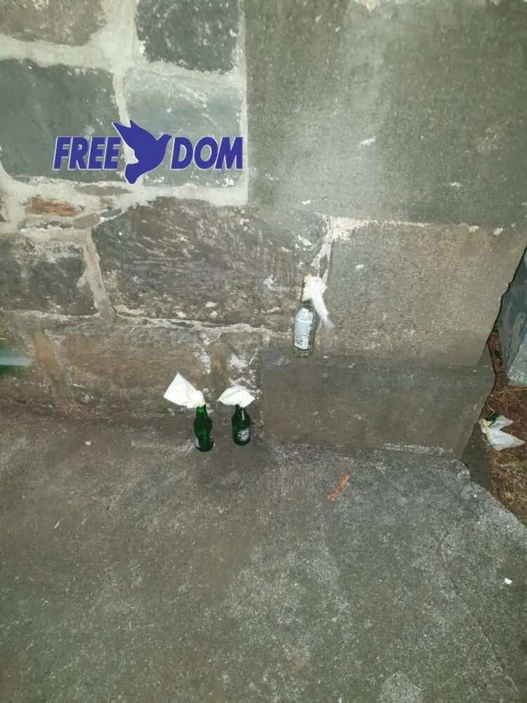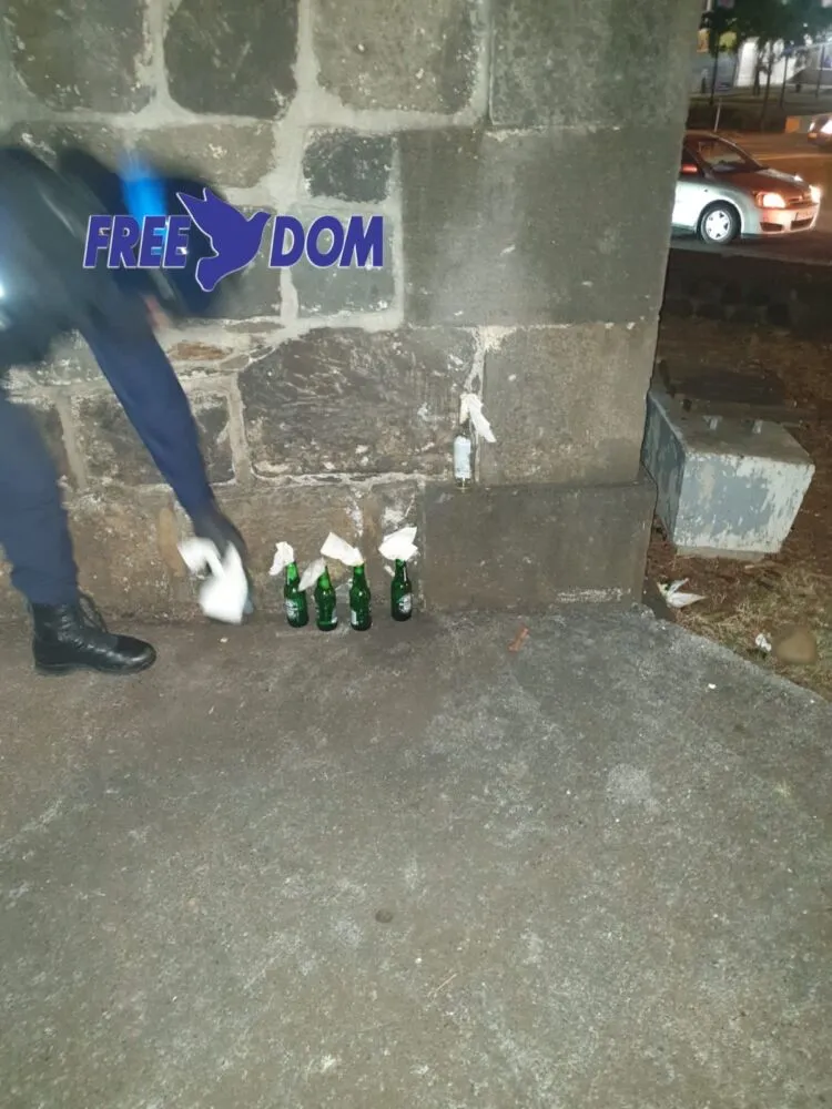 Des cocktails cocktails Molotov prêts à l’emploi, retrouvés dans la rue à Sainte-Clotilde.