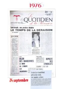 1976-2007 Les années Quotidien_Page_009 par Céline Hardelain 26 novembre 2023 1 min de lecture Ne manquez pas toute l’actualité de La Réunion ! Abonnez-vous à la newsletter de Free Dom ! Valider Partager Facebook Twitter Pinterest Linkedin Whatsapp Reddit Email Céline Hardelain Laisser un commentaire Annuler la réponseYour email address will not be published. Enregistrer mon nom, mon e-mail et mon site dans le navigateur pour mon prochain commentaire. Current ye@r * Leave this field empty Articles récents... Mercredi 31 décembre 2025 – Météo, éphéméride et horoscope du jour Hommage à Johnny Hallyday sur Free Dom 2 ce 5 décembre Mardi 30 décembre 2025 – Météo, éphéméride et horoscope du jour Saint-Joseph : découverte de 2337 plants de cannabis, arrestation de 2 individus Point sur le réseau routier départemental, 29 décembre à 16H30 Suicide sur le pont de la Rivière d’Abord : importante mobilisation des secours et des forces de l’ordre Radier submergé à Ilet Furcy : la route de Cilaos fermée à la circulation cette nuit Fortes pluies : appel à la plus grande prudence à Saint-Paul Saint-Gilles-les-Bains : une route impraticable, les riverains montent au créneau (VIDEOS) Très grands excès de vitesse : un délit passible de prison depuis le 29 décembre 2025
