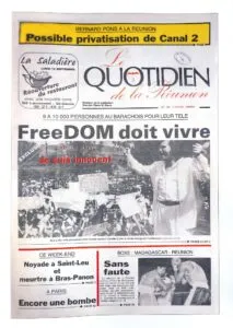 1976-2007 Les années Quotidien_Page_047 par Céline Hardelain 26 novembre 2023 1 min de lecture Ne manquez pas toute l’actualité de La Réunion ! Abonnez-vous à la newsletter de Free Dom ! Valider Partager Facebook Twitter Pinterest Linkedin Whatsapp Reddit Email Céline Hardelain Laisser un commentaire Annuler la réponseYour email address will not be published. Enregistrer mon nom, mon e-mail et mon site dans le navigateur pour mon prochain commentaire. Current ye@r * Leave this field empty Articles récents... Jeudi 1ᵉʳ janvier 2026 – Météo, éphéméride et horoscope du jour Mercredi 31 décembre 2025 – Météo, éphéméride et horoscope du jour Hommage à Johnny Hallyday sur Free Dom 2 ce 5 décembre Mardi 30 décembre 2025 – Météo, éphéméride et horoscope du jour Saint-Joseph : découverte de 2337 plants de cannabis, arrestation de 2 individus Point sur le réseau routier départemental, 29 décembre à 16H30 Suicide sur le pont de la Rivière d’Abord : importante mobilisation des secours et des forces de l’ordre Radier submergé à Ilet Furcy : la route de Cilaos fermée à la circulation cette nuit Fortes pluies : appel à la plus grande prudence à Saint-Paul Saint-Gilles-les-Bains : une route impraticable, les riverains montent au créneau (VIDEOS)