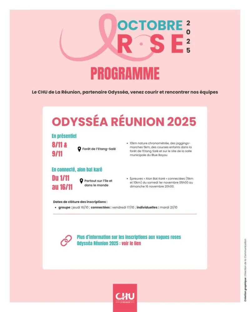 Chaque année, le mois d’octobre se pare de rose pour rappeler l’importance du dépistage et de la prévention du cancer du sein. En 2025, le CHU de La Réunion et le GHER redoublent d’efforts avec un programme riche d’actions de sensibilisation, d’ateliers, de consultations spécialisées et d’événements conviviaux.