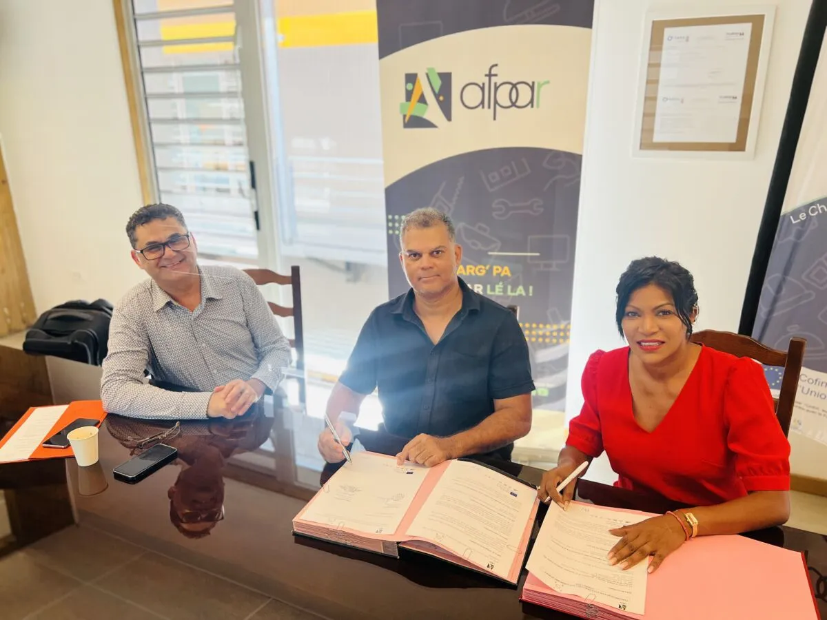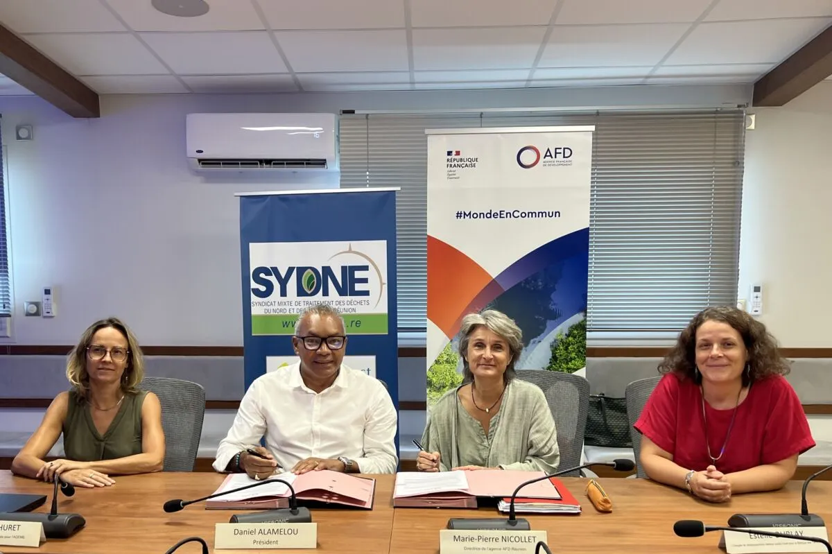 Le Président du Syndicat mixte de traitement des Déchets du Nord et de l’Est de La Réunion (SYDNE), Monsieur Daniel Alamelou et la Directrice de l’Agence française de développement (AFD) Réunion – TAAF, Madame Marie-Pierre Nicollet, en présence de l’ADEME et de la Banque des Territoires, ont officialisé leur partenariat ce jeudi 13 mars par le financement (480K€) d’un appui technique visant à la transformation et l’amélioration des services de traitement des déchets.