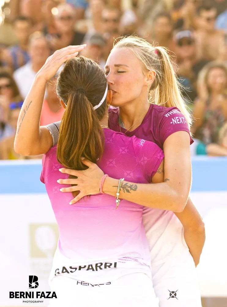 La finale Dames, avec d’un côté les Italiennes Giulia Gasparri et Ninny Valentini, et de l’autre aussi les Italiennes, Nicole Nobile et Sofia Cimatti ; ce match très disputé s’est conclu par la victoire de Giulia Gasparri et Ninny Valentini : 6/0, 3/6, 10/06. Gros clap de fin pour la qualité de cette finale et malgré la « very hot ambiance » dans tous les sens du terme !