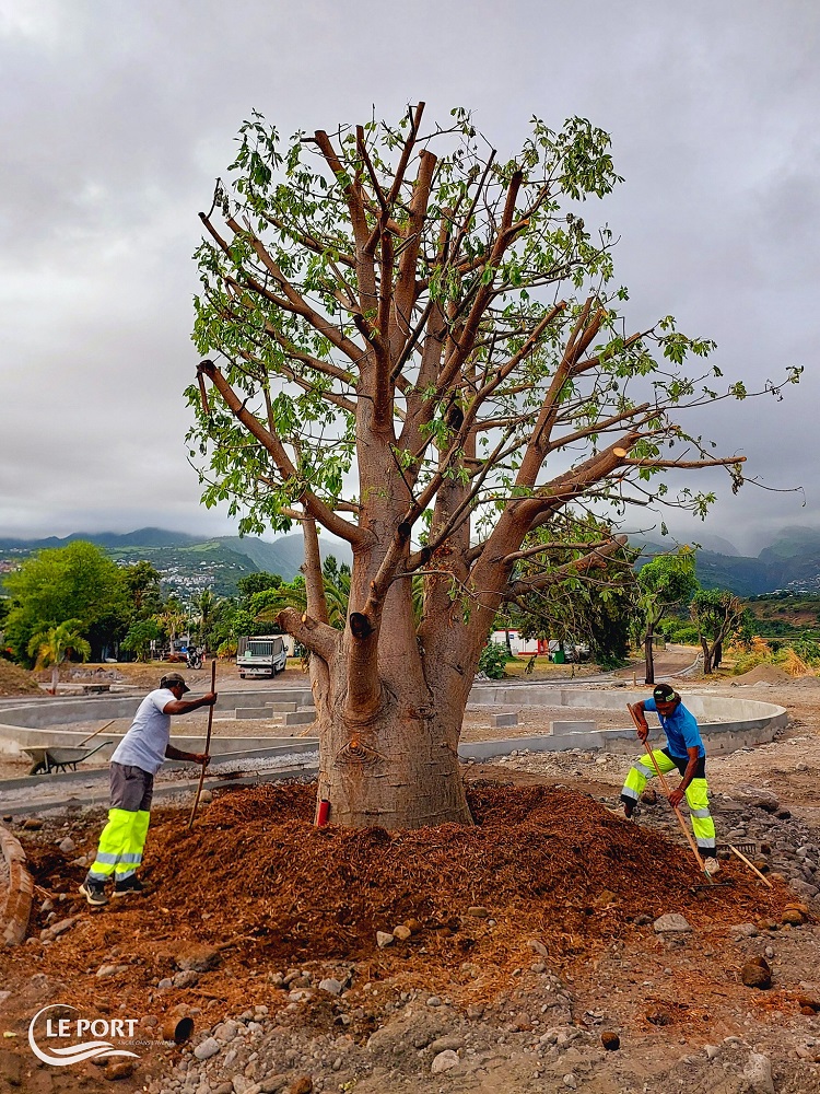 Désormais, le baobab embellit les berges de la Rivière des Galets, non loin de la palmeraie, contribuant ainsi à la végétalisation de la Ville du Port, qui offre 47 m² d’espaces verts par habitant.