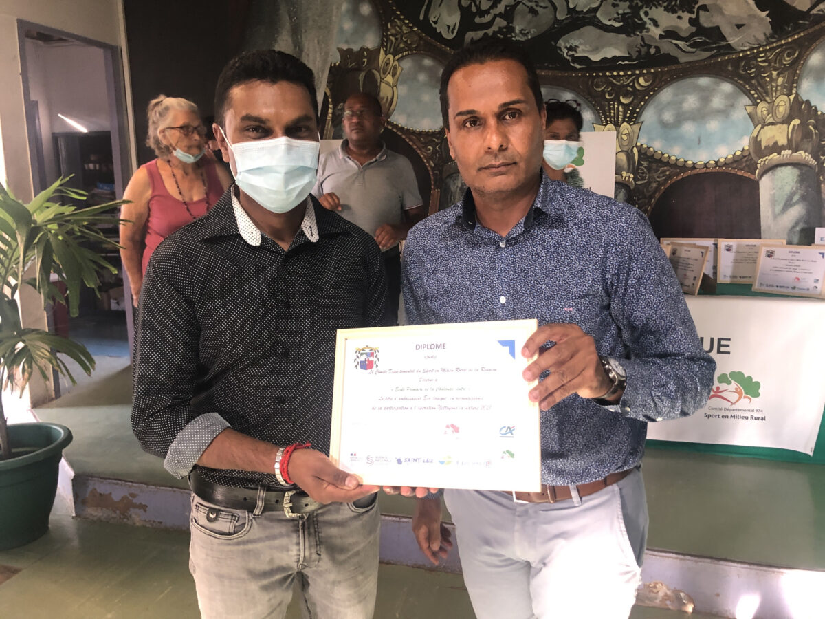 Le Maire de Saint-Leu accompagné de Marie-Claude Anamalé, Adjointe déléguée à la vie associative et Suzelle Barbin, élue du quartier, a remis aux acteurs associatifs mobilisés le diplôme et titre d’ambassadeur Eco-logique.