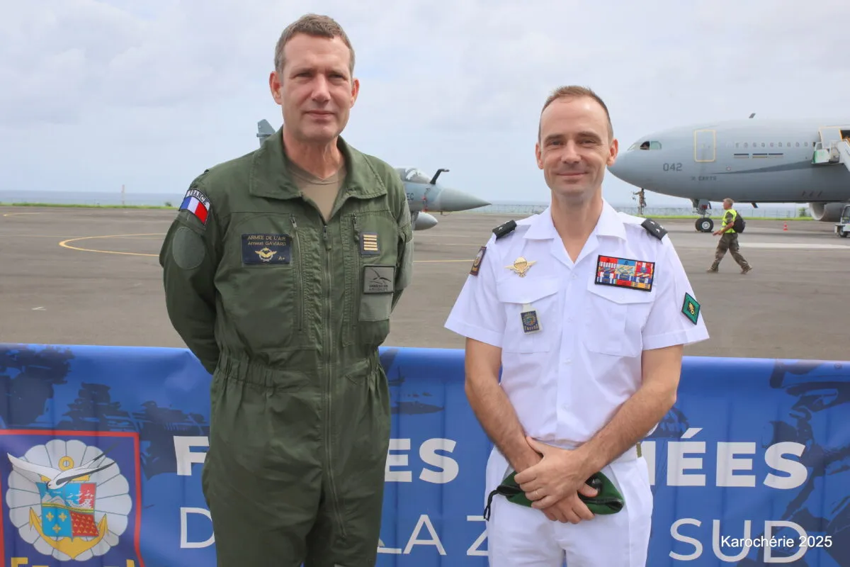 Le Colonel Arnaud Gaviard Etat major des Armées de l’air et le Général Jean De Monicault, des Forces Armées dans la Zone Sud de l’Océan Indien (FAZSOI),