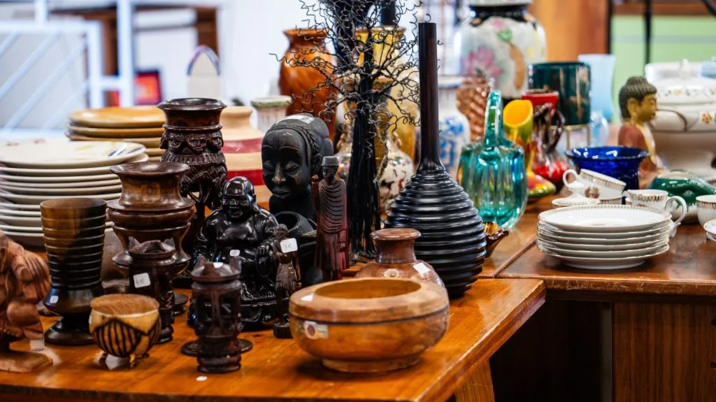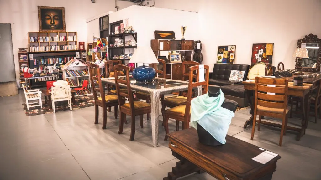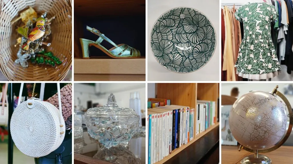 On y trouve des vêtements, du linge de maison, de la vaisselle, des articles de décoration, de bouquinerie, des meubles, de l’électro-ménager, de la maroquinerie, des jouets et encore plein d’autres bonnes affaires