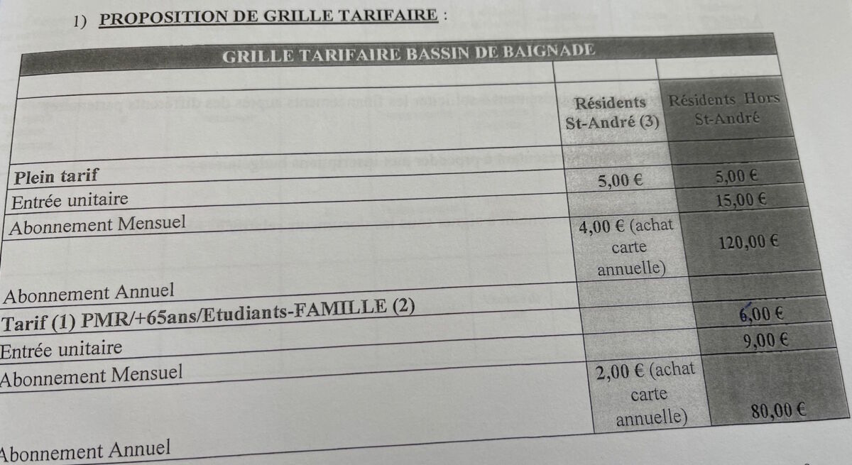 Voici la grille des tarifs qui seront appliqués aux résidents et aux non résidents. Notons que pour les résidents, le tarif sera de 4 € par an, soit l’achat d’une carte d’abonnement annuelle