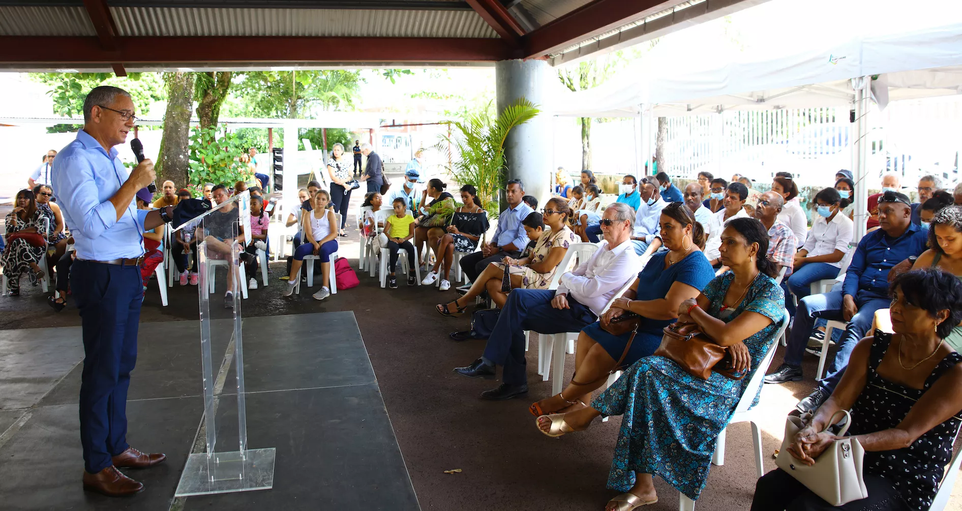 Joé Bédier a ensuite présenté le projet du Parc Lacaussade : « Le Parc Lacaussade est un projet de 2,4 millions d’euros qui durera pas moins de 12 mois. Il s’agit du premier poumon vert de la ville et il représente une vraie centralité stratégique. On retrouve en périphérie, la médiathèque, les écoles Lacaussade et Capucine, le jardin d’enfants, les services publics de la Maison de la Vanille. On comprend donc aisément que cet espace est une centralité stratégique qui est aujourd’hui encerclée par une circulation dense. Le nouveau Parc aura donc pour principale vocation de se constituer en tant que lieu urbain ludique et agréable. C’est une parenthèse nature qui sera proposée aux riverains, aux familles et aux différents utilisateurs qui fréquenteront les alentours. Le Parc Lacaussade est une opportunité pour la commune de repenser sa relation au citoyen et à la ville. En effet, au-delà du fait qu’il constituera un poumon vert au cœur du centre-ville dense, il permettra également aux habitants, aux usagers, aux personnes de passage de profiter d’un espace agréable où il fera bon se balader.