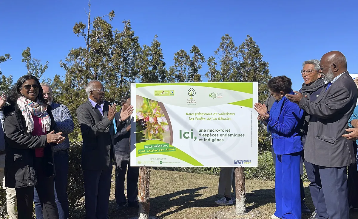Près de 5000 jeunes plants fournis par le Département vont peupler la future micro-forêt du Centre de vacances de la Fédération des œuvres sociales (FOS Réunion) situé à Bois-Court, dans la fraîcheur de la Plaine-des-Cafres. Prévue sur 3 ans, l’opération de plantation, accompagnée de la création d’une unité de production, s’inscrit dans le cadre du Plan 1 Million d’Arbres pour La Réunion (P1MA), lancé par la Conseil départemental en 2019. Le 25 juin, la visite du site accueillant les espèces indigènes et endémiques a été suivie du dévoilement d’une plaque et de l’inauguration d’un sentier de découverte par la vice-Présidente du Département, Augustine Romano, du Maire du Tampon, Patrice Thien-Ah-Koon et des autres partenaires de la FOS Réunion présidée par Emmanuel Sériacaroupin.
