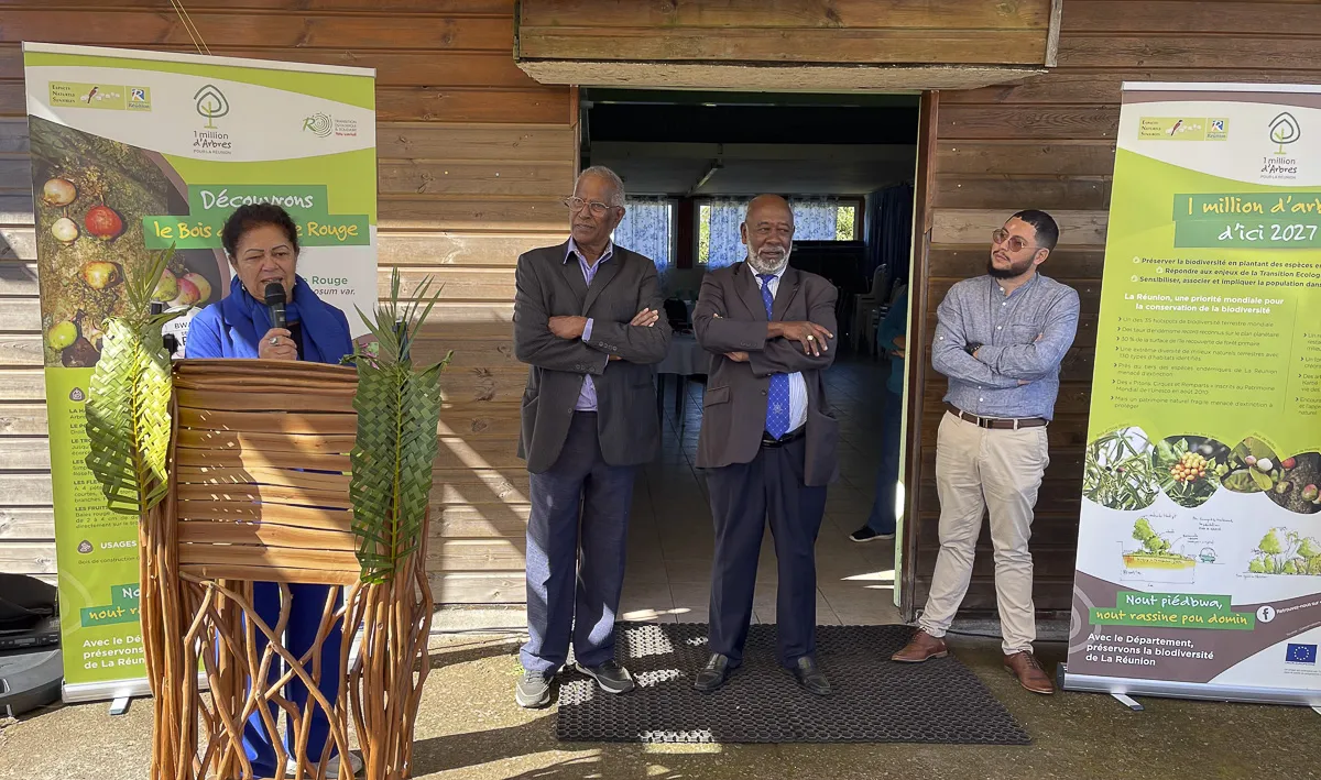 Les invités ont symboliquement mis en terre diverses espèces de la forêt de Bois de couleur des Hauts : Bois noir des Hauts, Bois d’oiseaux, Bois de pomme rouge, Bois de Charles, Paille sabre… Augustine Romano a saisi l’occasion pour rappeler que « le P1MA n’est pas seulement le projet du Département. C’est avant tout un projet collectif associant tous les Réunionnais. Aujourd’hui, plus de 400 000 plants sont mis en terre et ce sont plus de 100 partenaires publics et privés qui sont mobilisés dans cette reconquête écologique ambitieuse, saine et collective« .