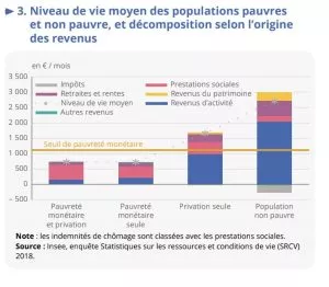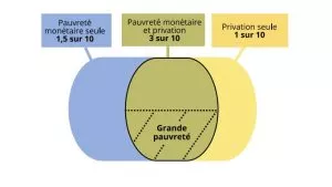 sévère (niveau de vie inférieur à 50 % du niveau de vie médian français), et de privation matérielle et sociale sévère
