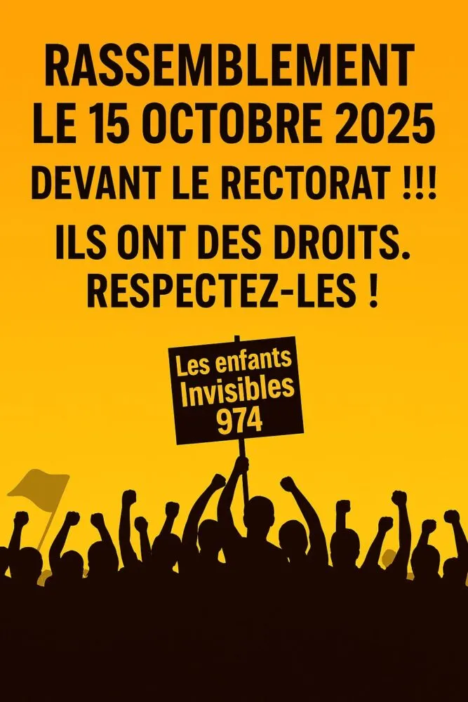 Derrière ces mots, souligne le collectif, se cachent des enfants sans solution de scolarisation, des familles à bout et des droits bafoués. Face à ce qu’il qualifie de déni et d’indifférence institutionnelle, Les Enfants Invisibles 974 appellent à une action symbolique et pacifique le mercredi 15 octobre, de 9h à 11h, devant les locaux du rectorat.