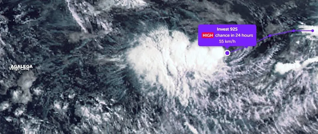 Le système dépressionnaire suivi près de l’archipel des Chagos présente des signes d’intensification. Selon le Joint Typhoon Warning Center (JTWC), la probabilité qu’il évolue en dépression tropicale ou en tempête dans les prochaines 24 heures est désormais jugée élevée.