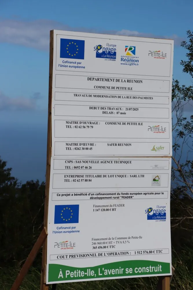 Le projet est cofinancé par lʼUnion Européenne dans le cadre du Programme de Développement Rural de La Réunion et notamment des voiries agricoles – volet FEADER PSN 2023-2027