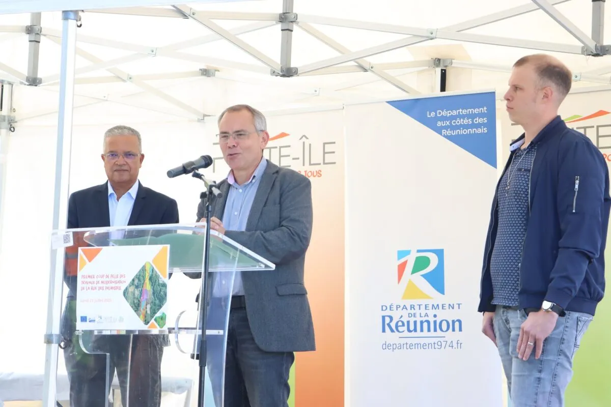 Aujourd’hui, lundi 21 juillet 2025, en présence du Département, la ville de Petite-Île a procédé au premier coup de pelle des travaux de modernisation de la rue des Palmistes.