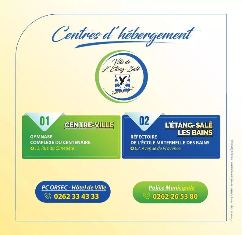 Le centre d’hébergement se situe à la salle des fêtes les Goménolés. Le numéro d’urgence est le 02 62 51 49 12.