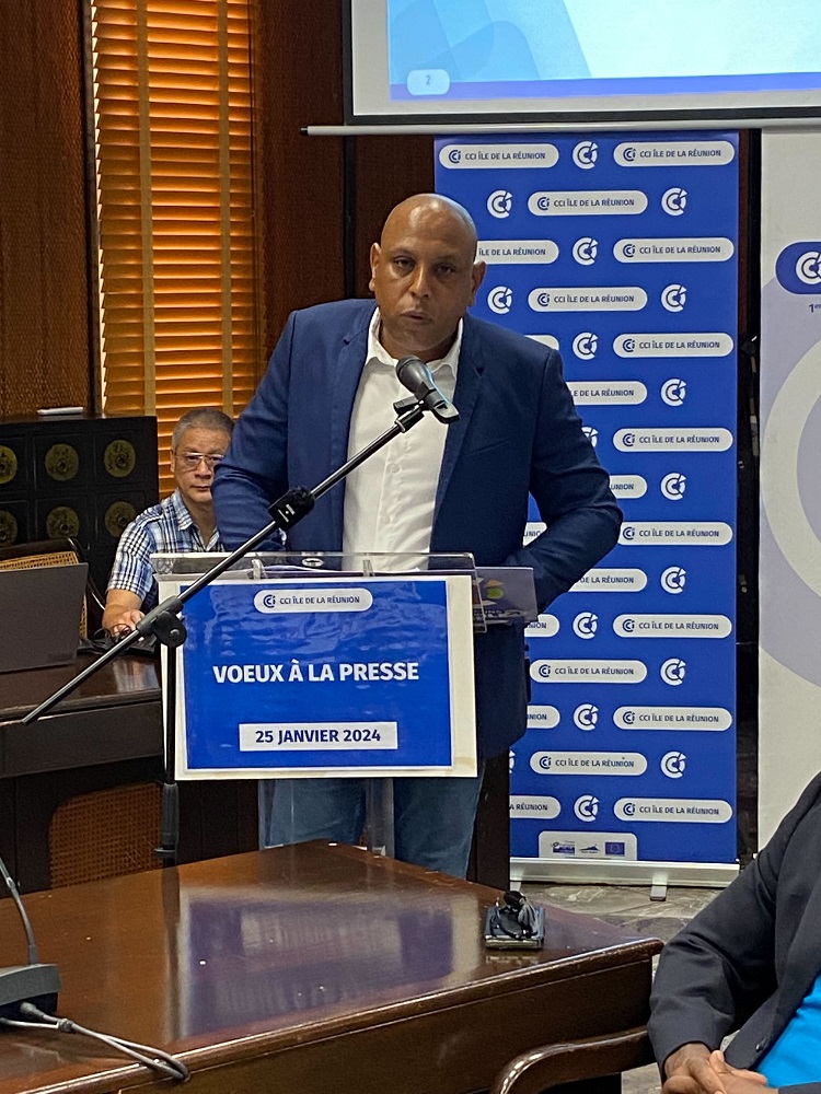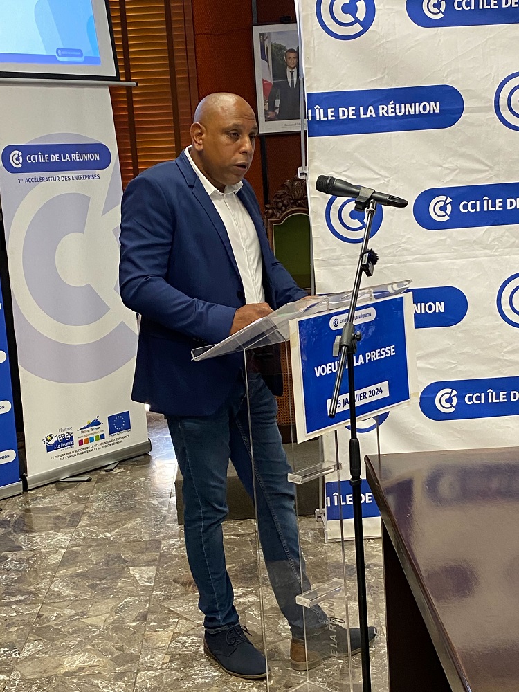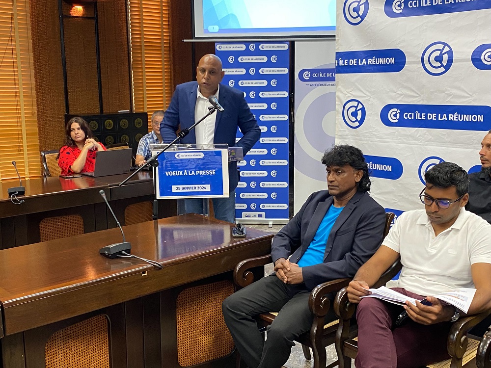 Le jeudi 25 janvier 2024, Pierrick Robert, Président de la Chambre de Commerce et d’Industrie de La Réunion (CCIR), a présenté ses vœux à la presse. La conférence de presse s’est déroulée à 9h30 au siège de la CCI à Saint-Denis, en présence des élus consulaires