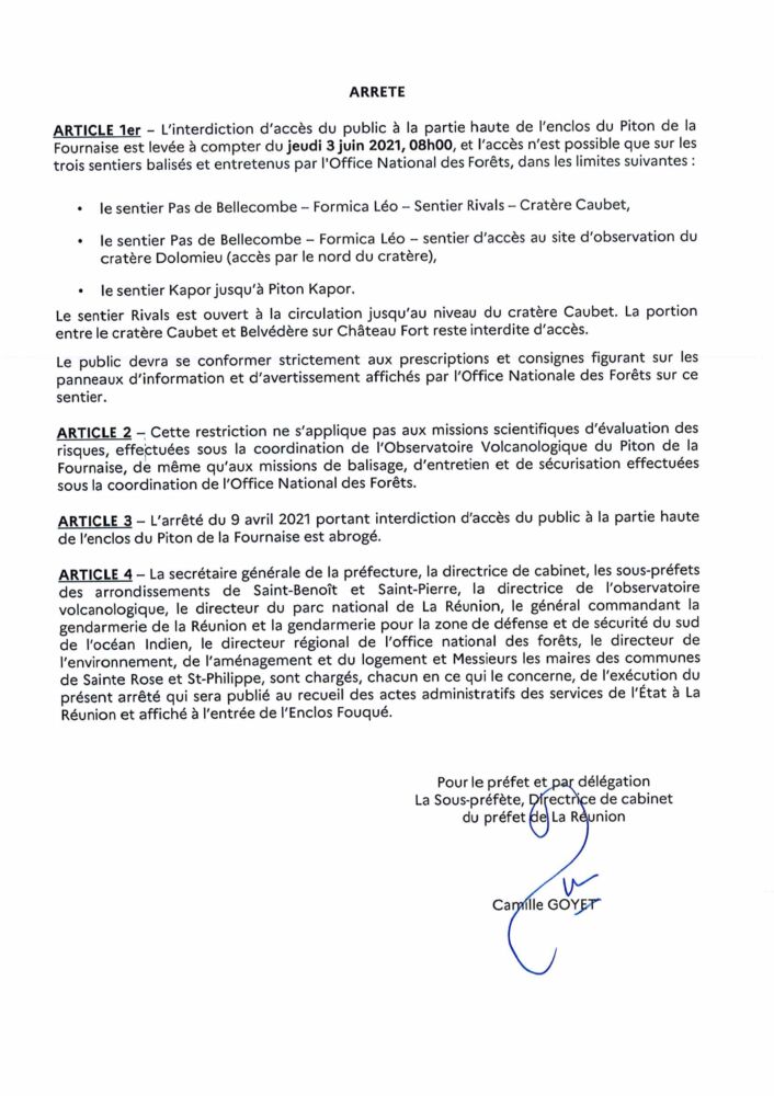 L’interdiction d’accès du public à la partie haute de l’enclos du Piton de la Fournaise est levée à compter de ce jeudi 3 juin à 8h00.
