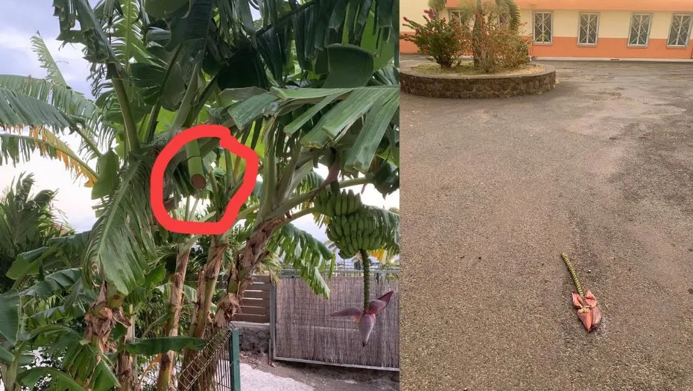 Les faits se sont déroulés aux abords de l’école Peyret Forcade, où le régime de “bananes mignonnes” a été retrouvé abandonné, partiellement abîmé, sur le parking. Le voleur n’a pas seulement agi en toute discrétion, il a aussi laissé une trace bien visible de son passage : le tronc fraîchement sectionné sur le bananier en témoigne.