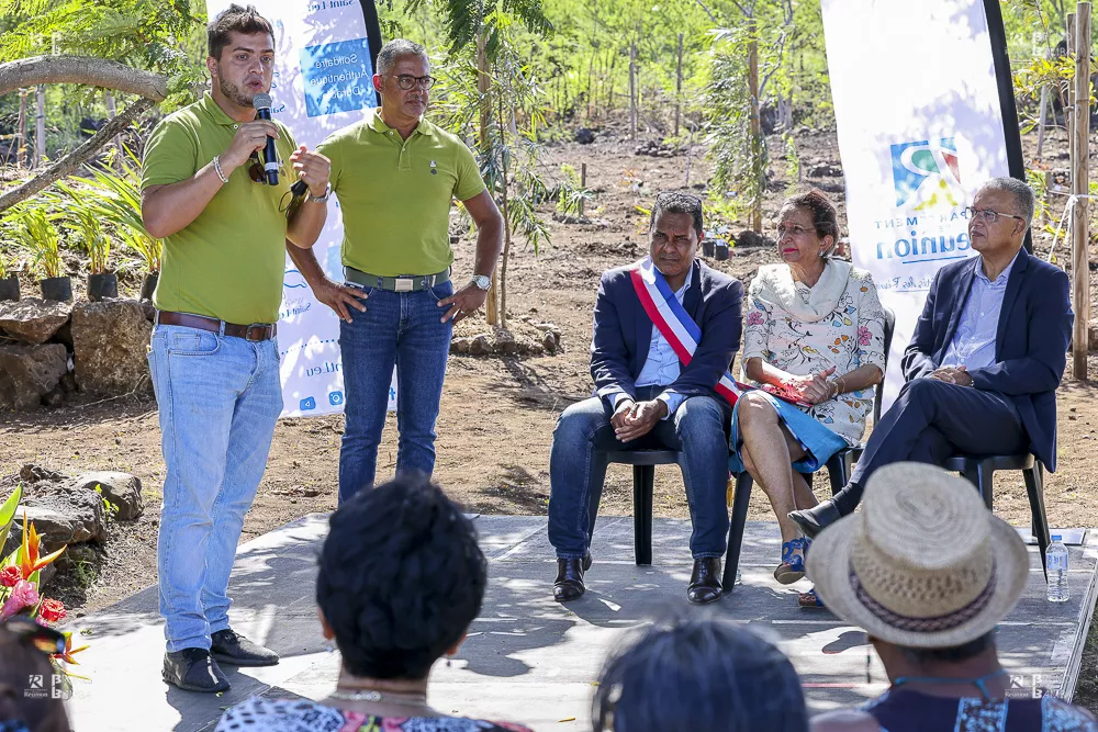 La Région Réunion, propriétaire du foncier était représentée par sa présidente Huguette Bello qui a salué cet « ambitieux projet d’innovation territoriale » piloté par la commune de Saint-Leu en liaison avec le Département, dans le cadre du Plan 1 million d’arbres (P1MA) pour La Réunion.