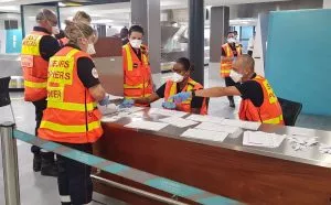 Le dispositif sanitaire à l’aéroport a rapidement été complété par un renfort de 6 sapeurs-pompiers pour assurer la logistique inhérente à la mise en quatorzaine dans les hôtels dédiés.