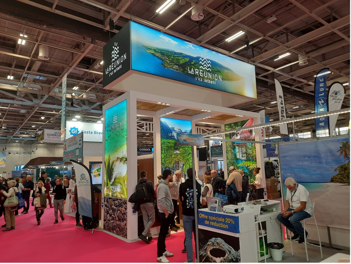 Accompagnés par l’IRT, les professionnels d’Escapade plongée, Dodo Palmé, Excelsus Plongée, ZUURIT, Réunion Diving et Travel Concept Sport ont soigneusement présenté et représenté La Réunion et sa biodiversité marine. Le stand attractif de notre destination a parmi d’informer un public nombreux quant aux possibilités de séjours et d’expériences à vivre sur notre île.
