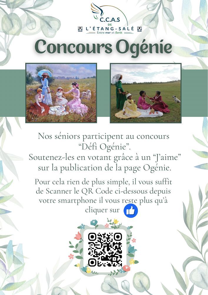 Nos séniors ont besoin d’un petit coup de pouce ; pour cela, il suffit tout simplement de scanner le QR CODE et de liker la publication sur le compte Facebook d’OGENIE.