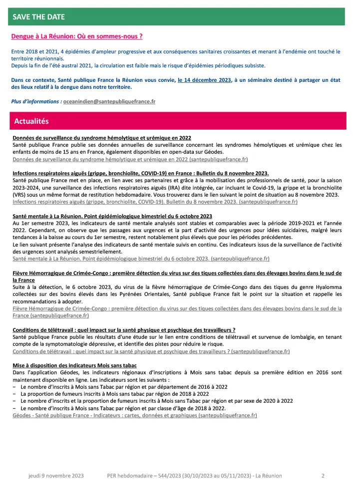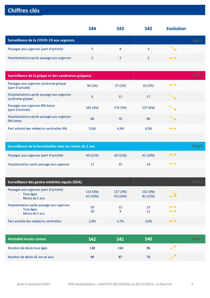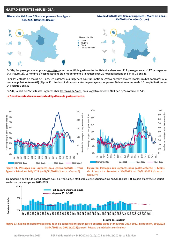 - Gastro-entérite : La Réunion est en épidémie de gastro-entérite (Les indicateurs sont stables en S44)