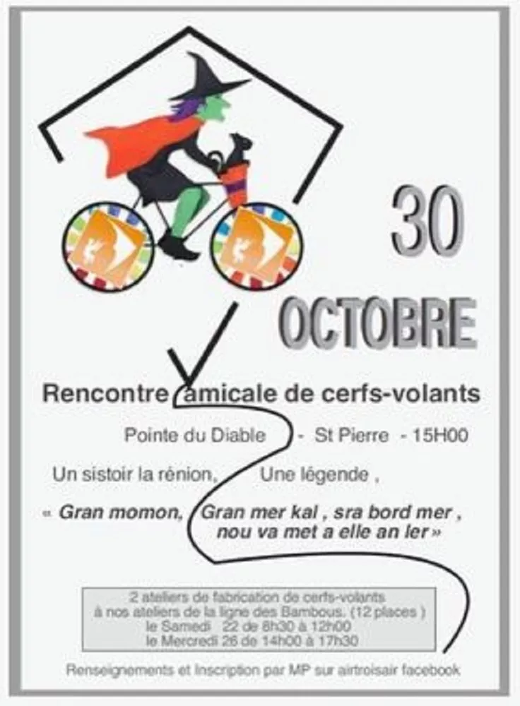 Ce dimanche 30 octobre, à 15 h, une rencontre amicale de cerfs-volants se déroulera à la Pointe au Diable, St Pierre.