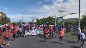 10h30 : C’est parti pour une opération escargot, à la fois à pied et en voiture, à St-Pierre. Les manifestants quittent le Boulevard Bank pour se rendre  au niveau du rond-point Shamrock où ils convergeront vers vers le front de mer de St-Pierre. Des prises de parole sont par la suite prévues, indiquait Joseph Madgeleine, pour Force Ouvrière, sur radio Free Dom.