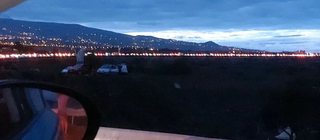 Dès potron minet s’est opéré le blocage du pont de la Rivière St Etienne sur les voies principales, le secteur du Ouaki et de la Rivière s’est retrouvé rapidement complètement saturé. Regardez cette photo de la longue file de voitures à St Louis à 6 heures (credit RADAR974)