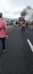 Manifestation d’hier : la 4 voies de Gillot bloquée par des gravats (PHOTOS- VIDEO)