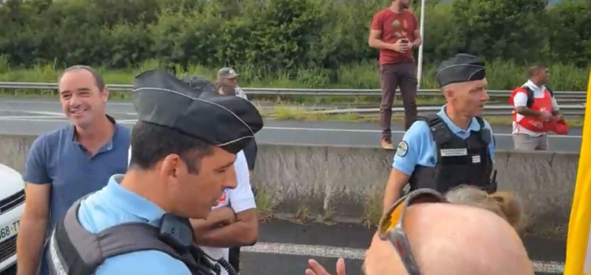 14h20 : le Pont de la rivière de Marsouins, dégagé, plus de barrage. Les forces de l’ordre sont sur place.