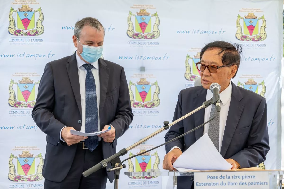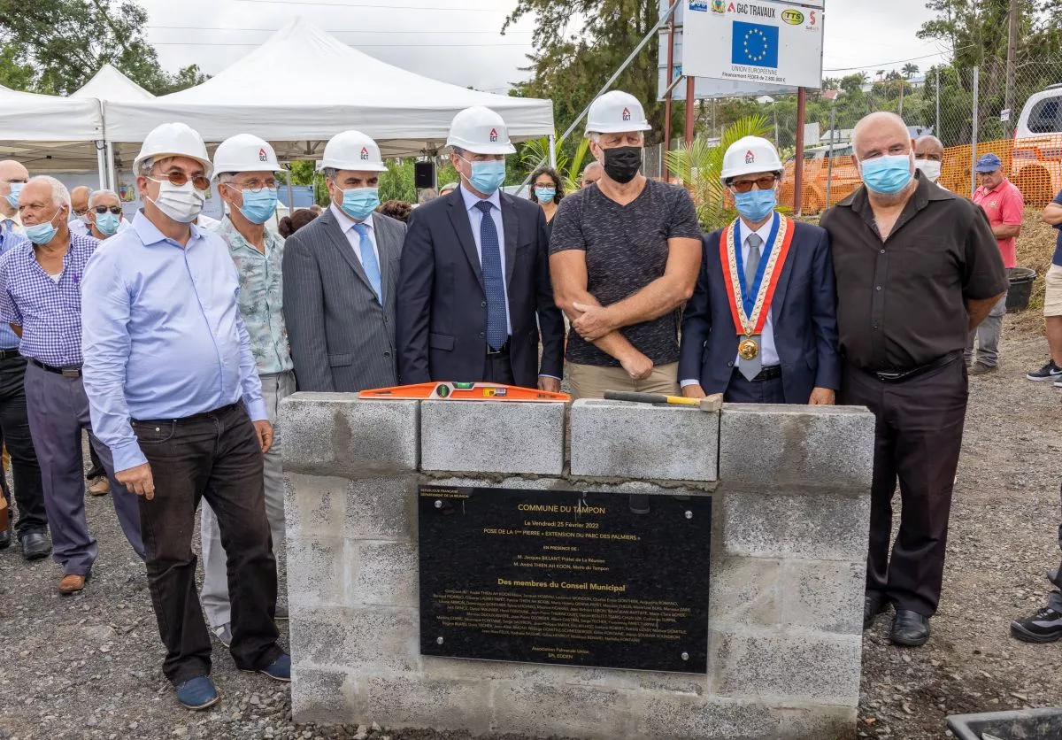 Aujourd’hui a eu lieu la pose de la 1ère pierre de l’extension du Parc des palmiers en présence de Monsieur André Thien Ah Koon, Maire du Tampon, de Monsieur Jacques Billant, Préfet de La Réunion, de Monsieur Lucien Giudicelli, Sous-préfet de Saint-Pierre, en présence de la SPL EDDEN, de l’association Palmeraie-Union, de l’ADAPEI et des représentants des entreprises SOLTEC, GC Travaux et CSPC, ainsi qu’en présence des élus du Conseil Municipal et les services de la municipalité.